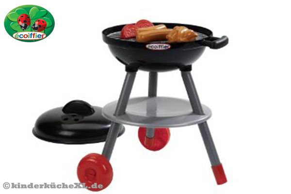 Dieser fantastische kleine Grill wird einfach mittels eines Stecksystems zusammengebaut. Dazu gehören sechs „glühende“ Kohlen, ein Pfeffer-und Salzgedeck, zwei Würstchen, einmal Hühnchen, zwei Tomaten und zwei Grill-Zangen. Wer ist denn jetzt der Grillmeister – Vater oder Sohnemann?