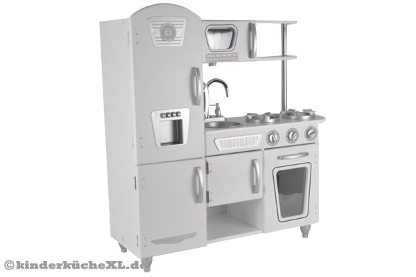 Die Kidkraft Spielküche Rosa Vintage ist ein Traum für alle Liebhaber des angesagten Retro Trends. Diese Kinderküche eignet sich für Kinder ab 2 Jahren. Diese Holz Kinderküche ist komplett ausgestattet. Inklusive Ofen, Mikrowelle, Kühlschrank mit Eiswürfel Maschine, Unterschränken, Retro Telefon, Spüle und Wasserhahn. Einfach zu montieren und direkt die leckersten Gerichte zaubern.