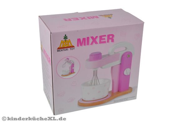 Einen Mixer braucht man natürlich auf jeden Fall, auch in der Kinderküche! Der schöne rosa Holzmixer von Woodtoys ist genau der Richtige. Bring den Mixer in die richtige Position, dreh den rosa Knopf oben auf dem Mixer und los gehts mit dem Mixen der leckersten Sachen. Die Größe des Mixers beträgt 20 x 12 x 20 cm (LxBxH).